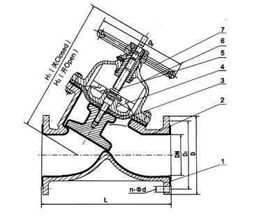 直流式衬胶隔膜阀外形尺寸图 |