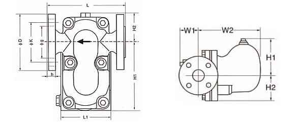 杠杆浮球式蒸汽疏水阀外形尺寸图 |