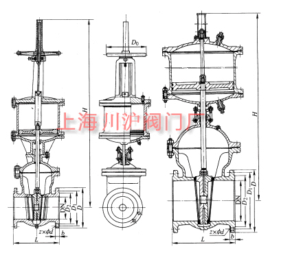 上海川沪阀门有限公司生产的气动法兰闸阀Z641H配有气动执行机构和手动机构,闸阀执行器采用双层气缸结构,它与单气缸式气动闸阀相比,提升力增大了一倍,解决了单气缸式气动闸阀的某些阀板在阀体内楔死而打不开的弊病,具备缓冲机构,能有效地减轻关闭阀门时由于活塞下行冲击而造成的阀板密封面和阀体密封面的磨损,同时也能避免闸板卡死的现象。气动法兰闸阀可以配用电的或气的回讯器,用以发送阀门开关状态信息。可以实现远距离控制,集中控制和自动控制。性能可靠、操作切换和维修方便等特点。已被石油、化工、海运等部门广泛用于对各类介质控制。 |