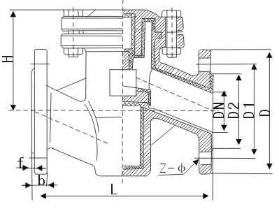 H41F46衬氟止回阀外形尺寸图 |