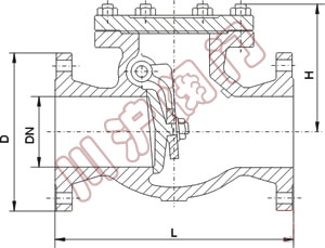 H44H旋起式铸铁止回阀外形尺寸图 |